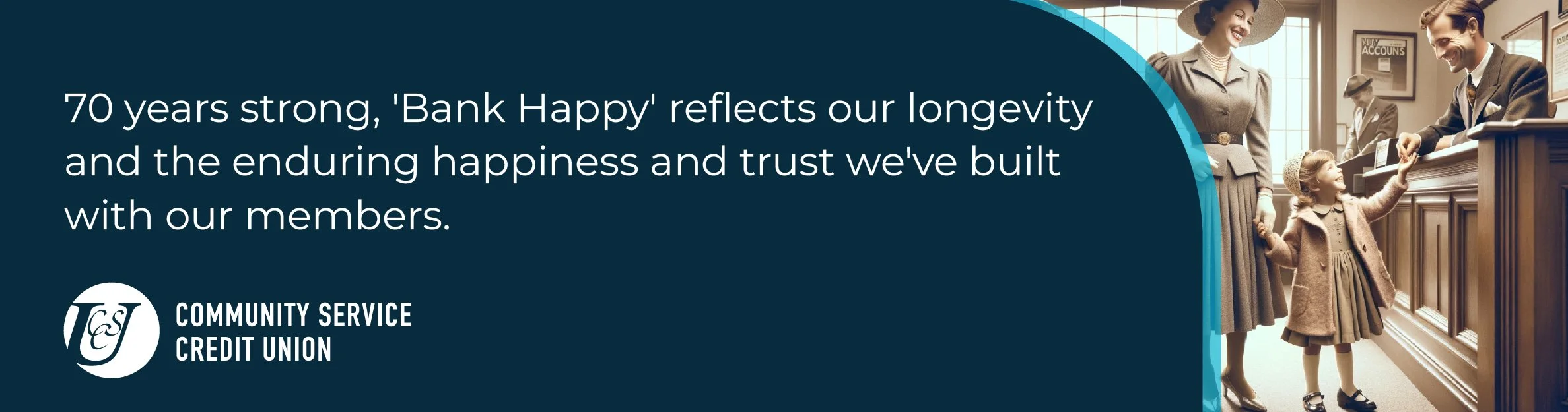 “Bank Happy” is all about making the banking experience straightforward, friendly, and positive. CSCU works hard to ensure their services are easy to use and that every member feels welcomed and valued. Whether it’s through user-friendly online banking, helpful customer service, or community events, CSCU wants members to smile when they think about their bank.